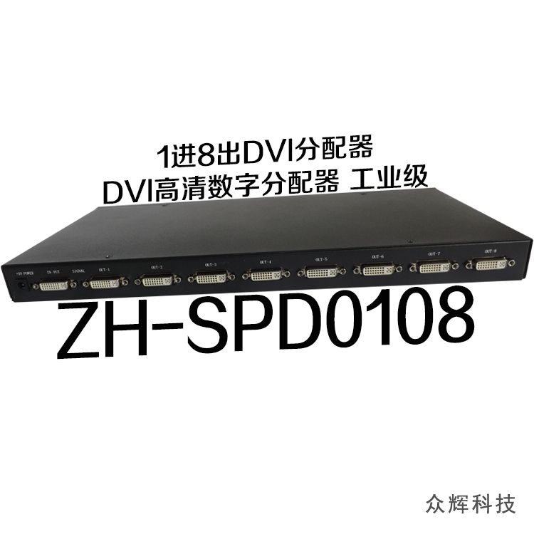 5、 ZH-SPD0116 工業(yè)型分配器輸入可支持標(biāo)準(zhǔn)DVI 和帶有HDCP 信號(hào),從