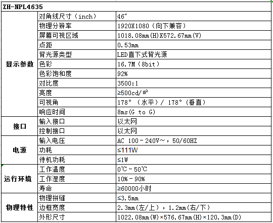 ZH-NPL4635 三星46寸3.5mm拼縫