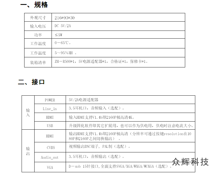 此款為ZH-R400的升級(jí)高端版本ZH-R500,此版本為全新發(fā)售,Linux嵌入式系統(tǒng),支持NPU,全按鍵操作,自動(dòng)記憶,自帶測(cè)試底圖,沒(méi)有信號(hào)接入時(shí)也可以調(diào)試,輸入輸出分辨率可以設(shè)置為1080P和2160P。支持上下左右鏡像,可做為題詞器使用。彌補(bǔ)之前版本分辨率低,顯示文字不清楚的問(wèn)題,如果對(duì)顯示要求不高,價(jià)絡(luò)敏感的用戶也可以選擇ZH-R100 如果輸入不要求4K,可能選擇1080P輸入的ZH-R400,如果喜歡安卓系統(tǒng)可以選擇ZH-R300。